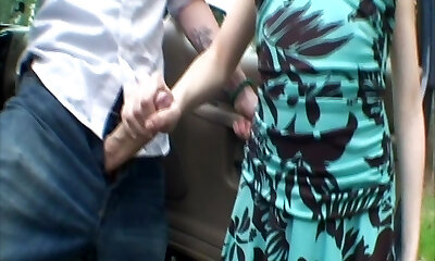 Dogging nymph squirts on cock