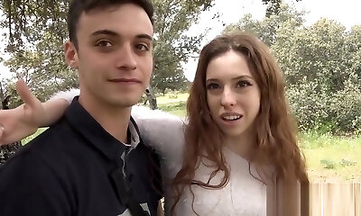 Redhead amateur teen bangs outdoor