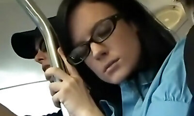 Chick dozes off and gets totally used in public transport
