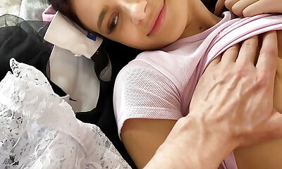 A step sister is boned by an older stepbro before study while her parents are not at home