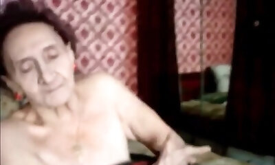 Ugly fat masked granny demonstrates her body naked. She is naughty.