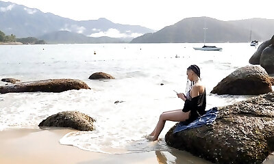 红热拉丁业余从巴西Luara Amaral拿起在海滩上和联播