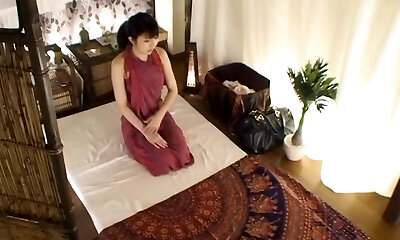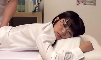 亚洲娃娃润滑了一个欢蹦乱跳的会议与一个按摩师