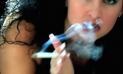 放荡的女士rikki6和梅丽娜梅森休息和吸烟