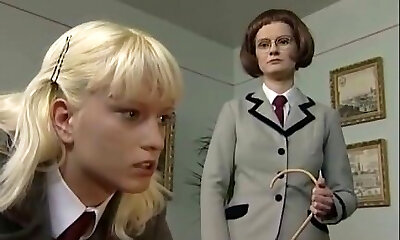 jüngere platin-blonde schülerin wird von ihrem alten erzieher geschlagen