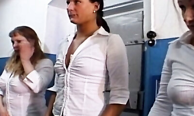 8 sporty teens licking salty pussies in the shower
